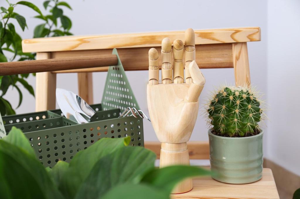 Ein wackeliger Stuhl wird mit neuen Schrauben und geölter Sitzfläche zum Lieblingsplatz. Kleine Macken erzählen Geschichten, und Ihr Zuhause gewinnt an Seele statt an anonymem, austauschbarem Perfektionismus.